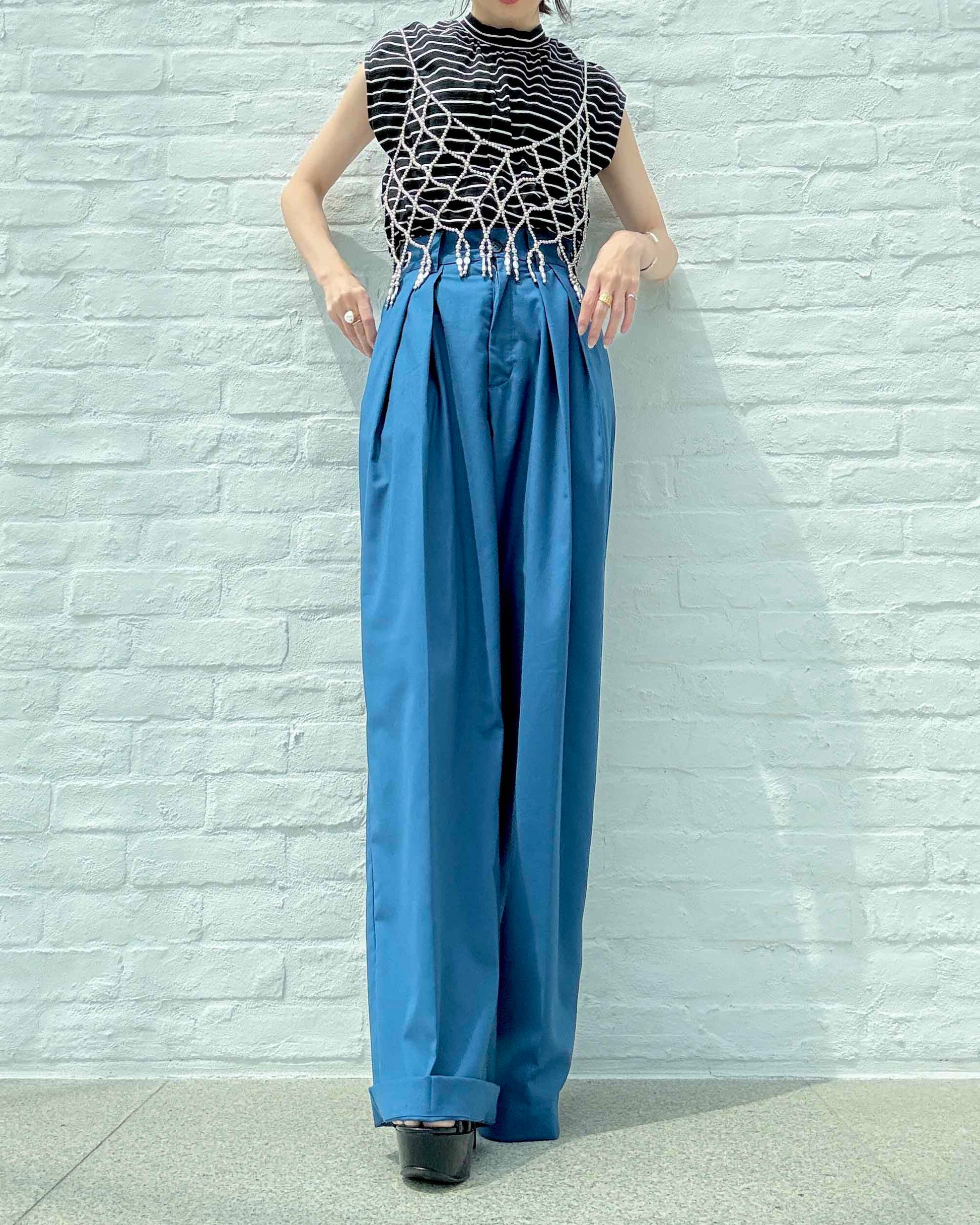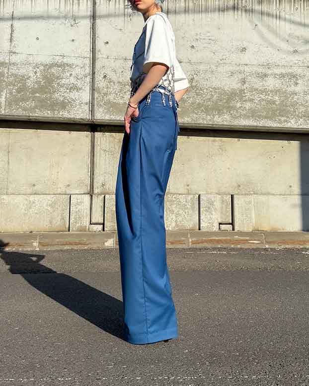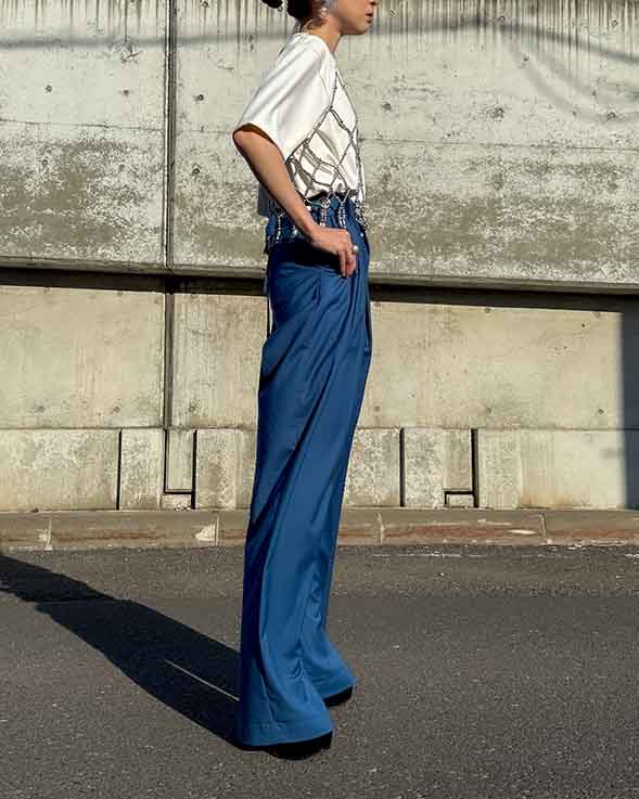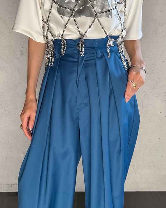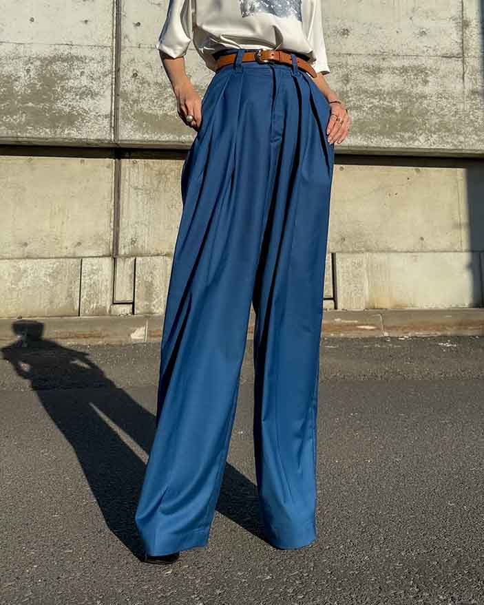 ハンサムさの中に女性らしさが光る、こだわりのワイドパンツです。