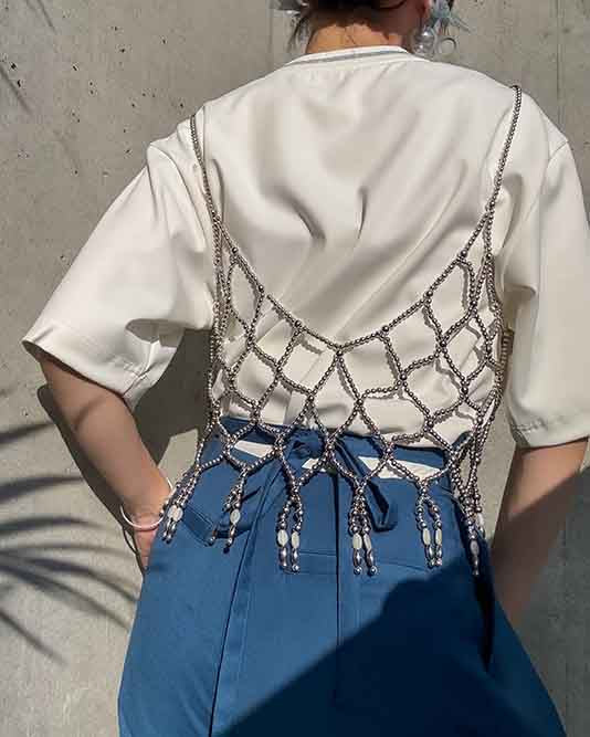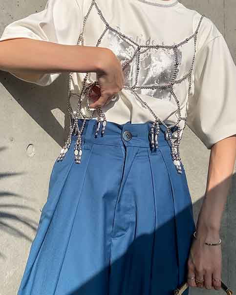 トップスはタイトなものはもちろん、ボリューム袖やショート丈とも好相性。