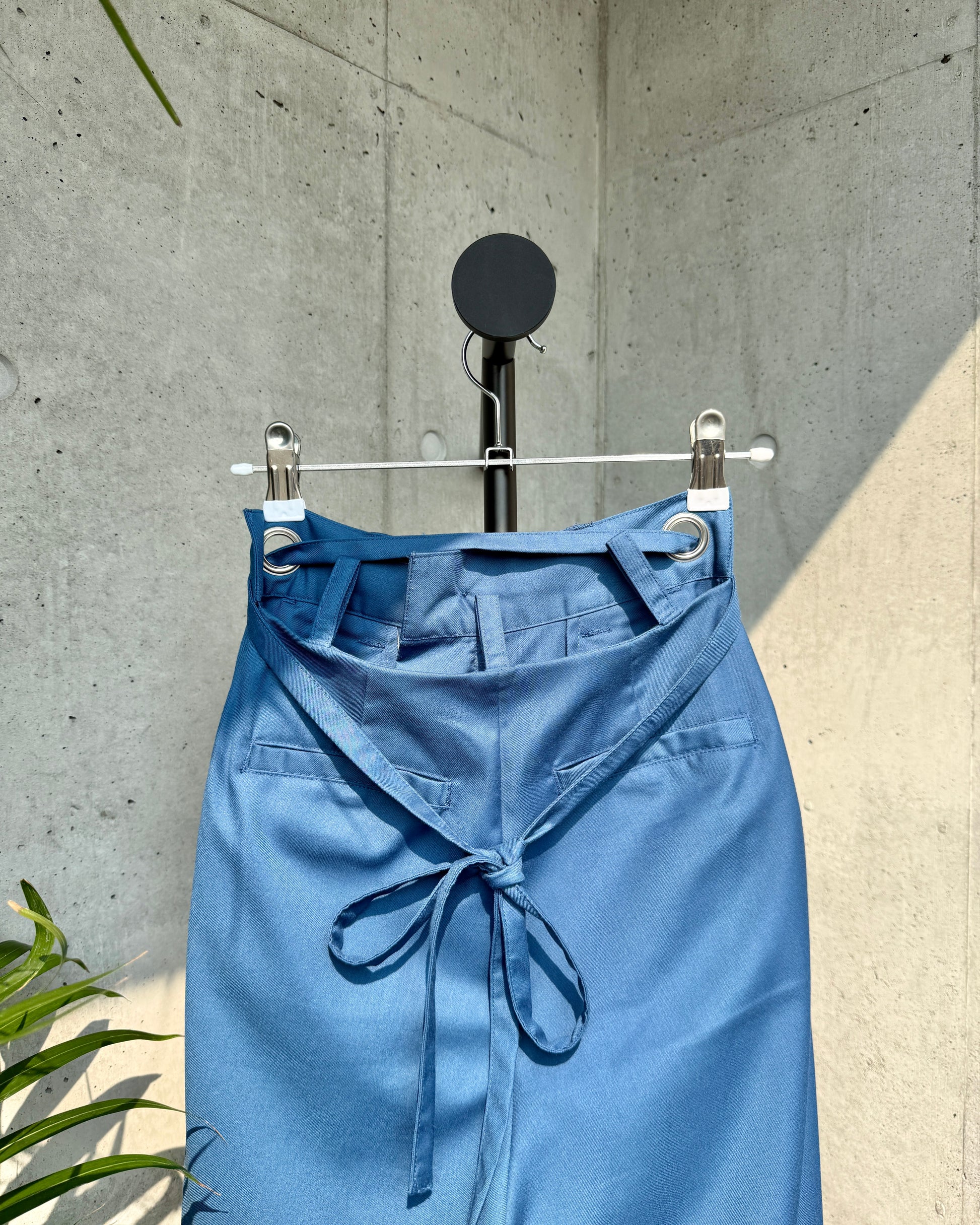 ウエストは、バックレースアップでもお手持ちのベルトでも楽しめる2WAY仕様。