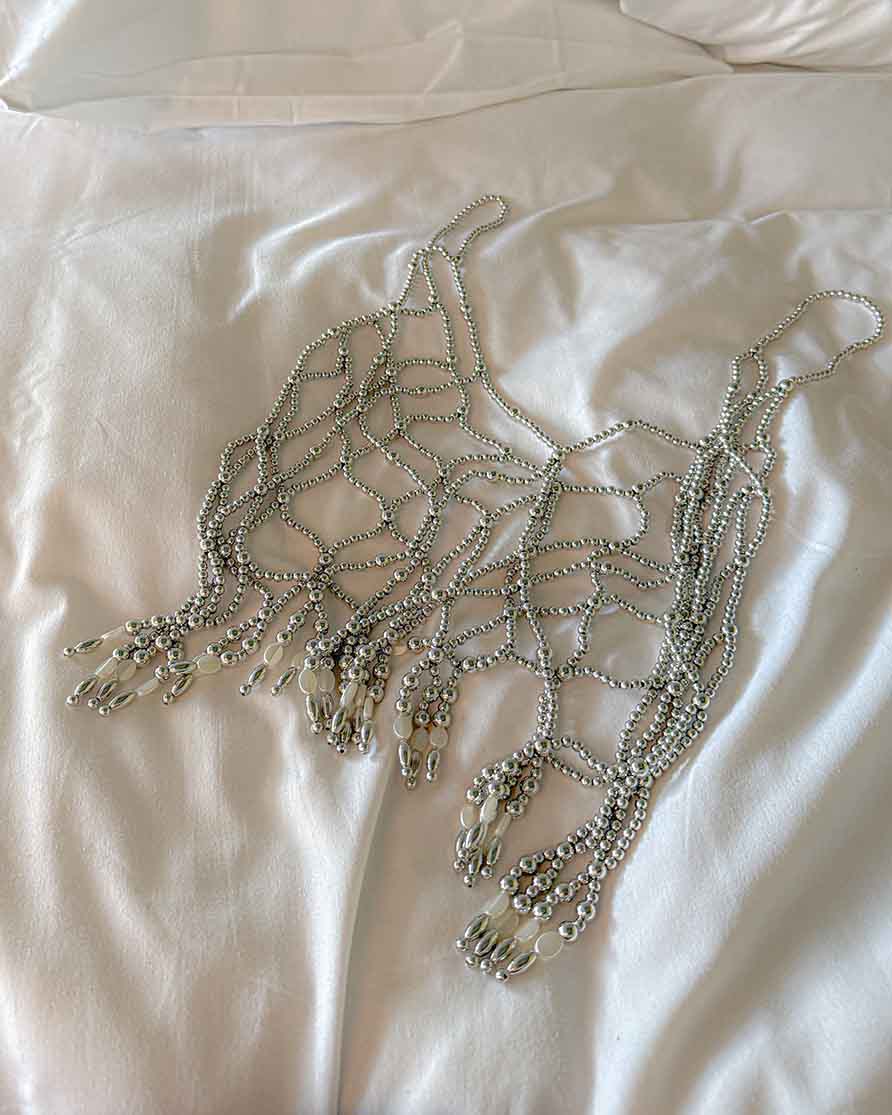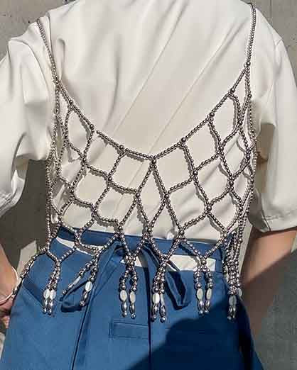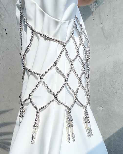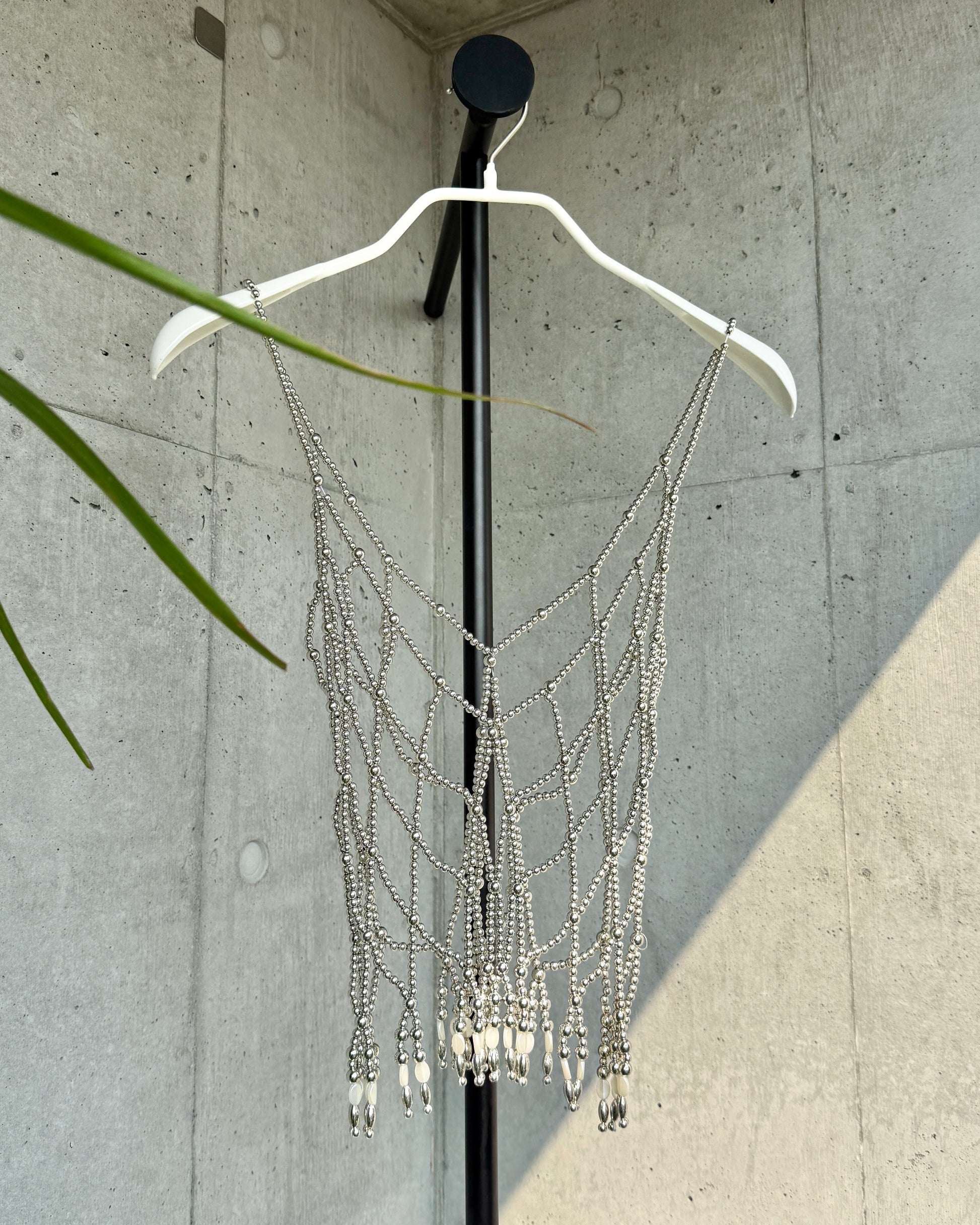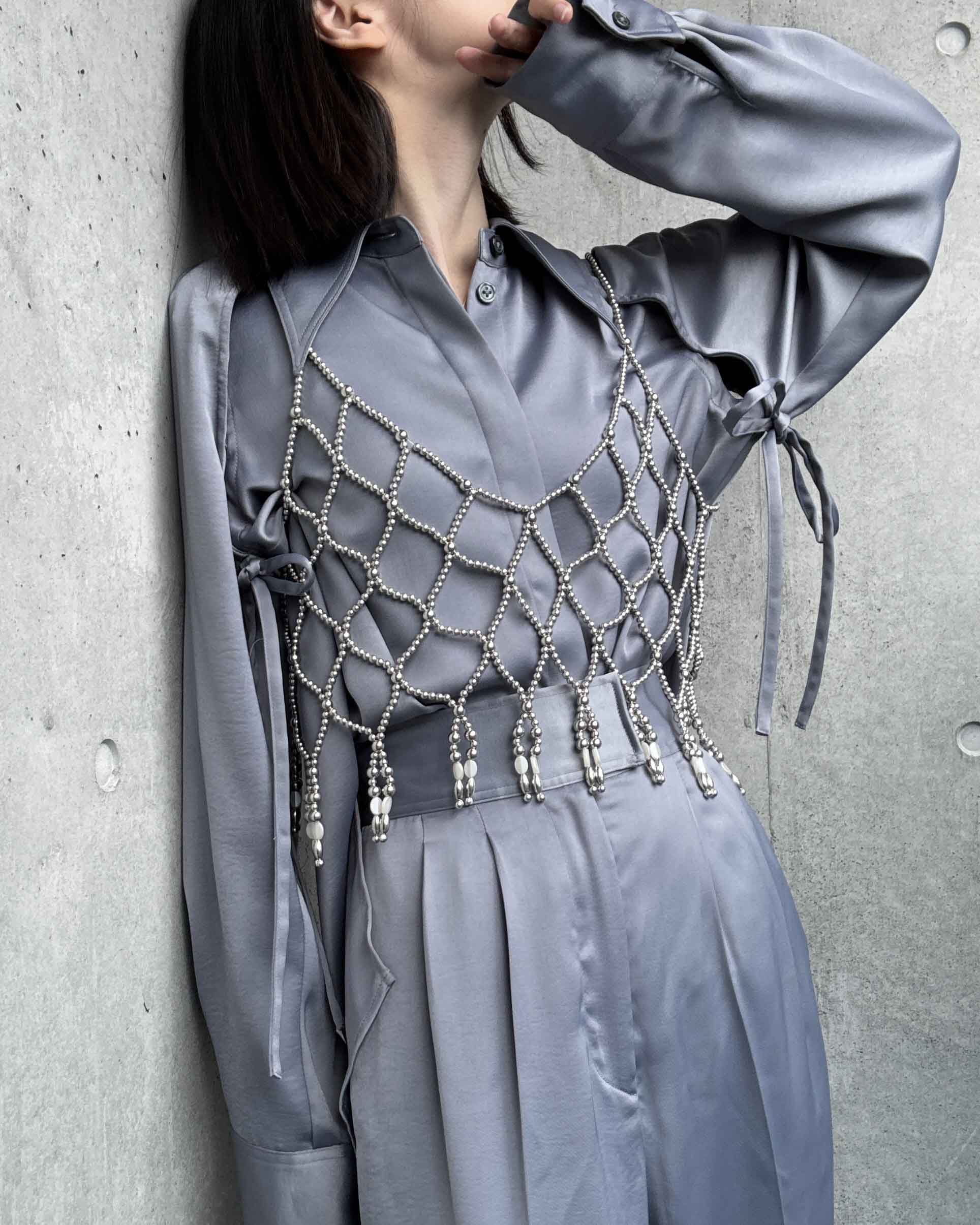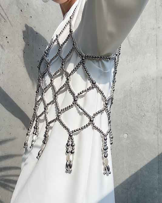 ビーズのみで丁寧に仕上げられた、“纏うアクセサリー”のようなメタルビスチェ。