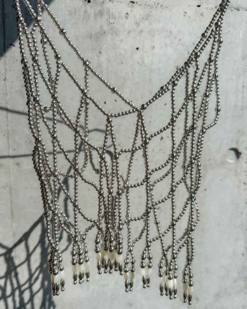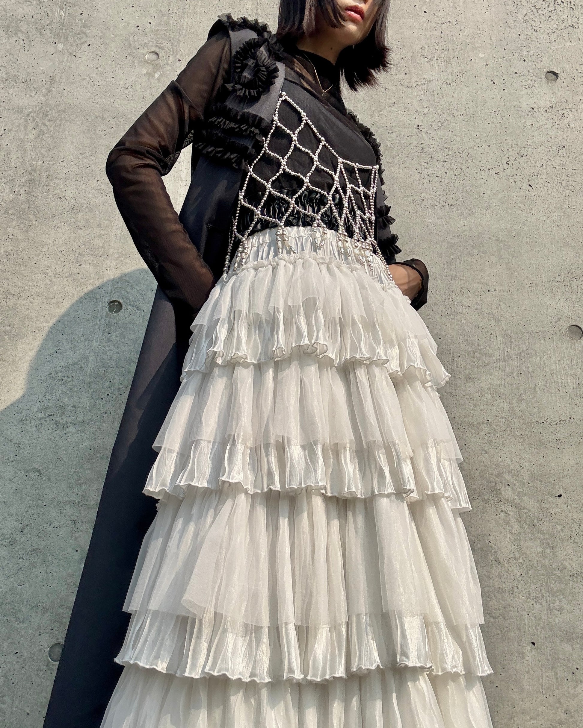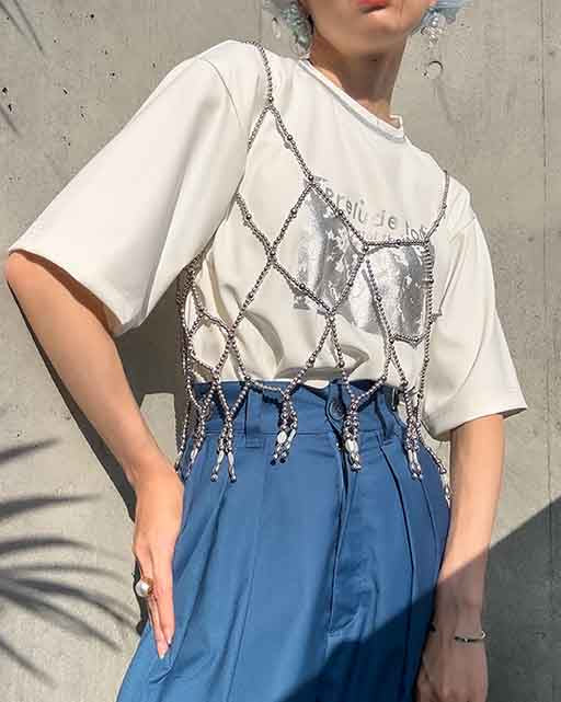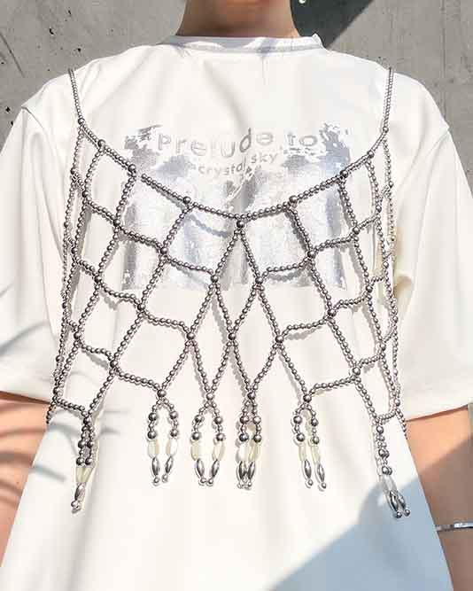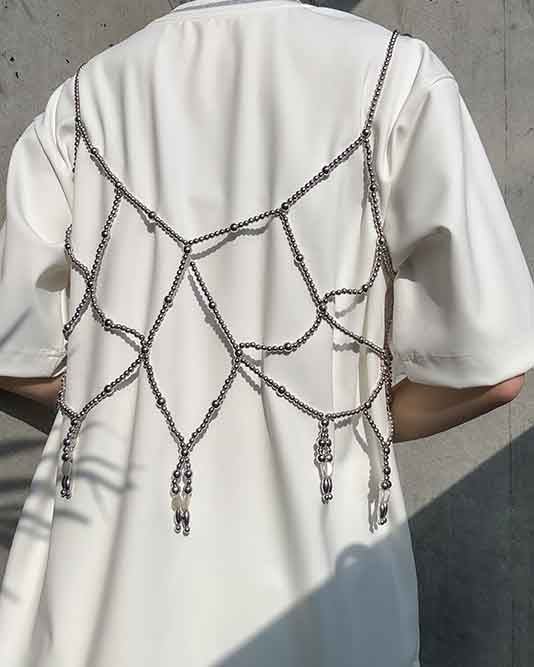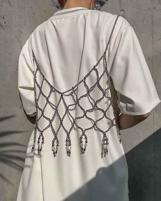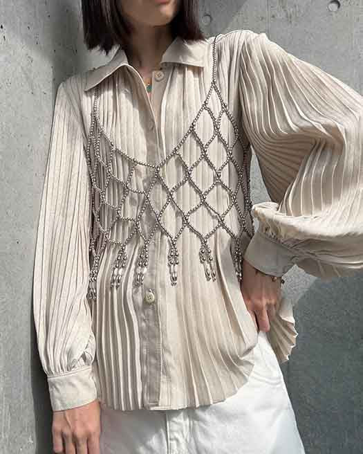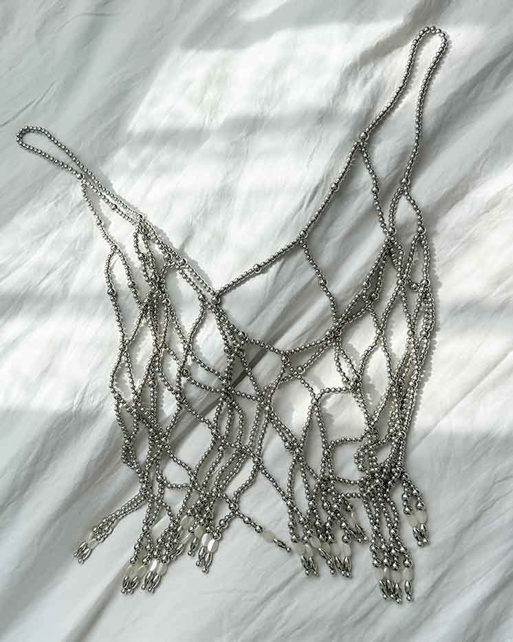 ビーズのみで丁寧に仕上げられた、“纏うアクセサリー”のようなメタルビスチェ。