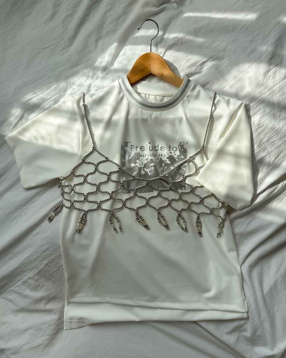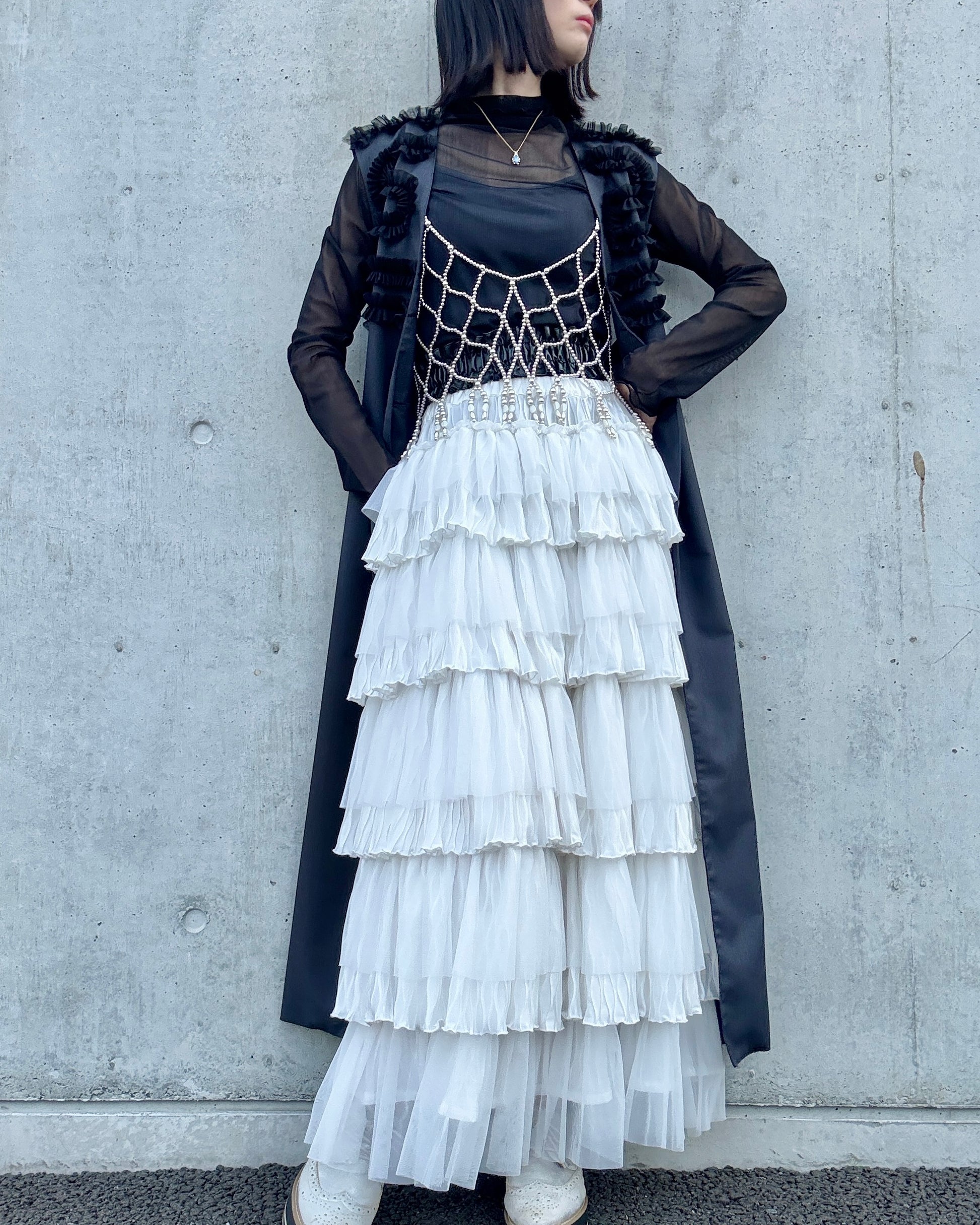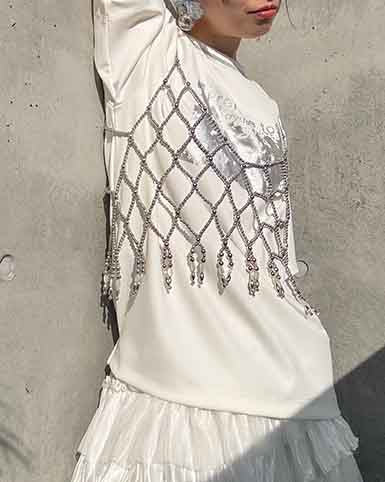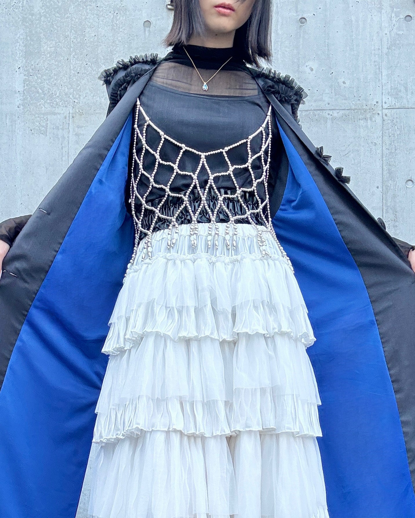 ビーズのみで丁寧に仕上げられた、“纏うアクセサリー”のようなメタルビスチェ。